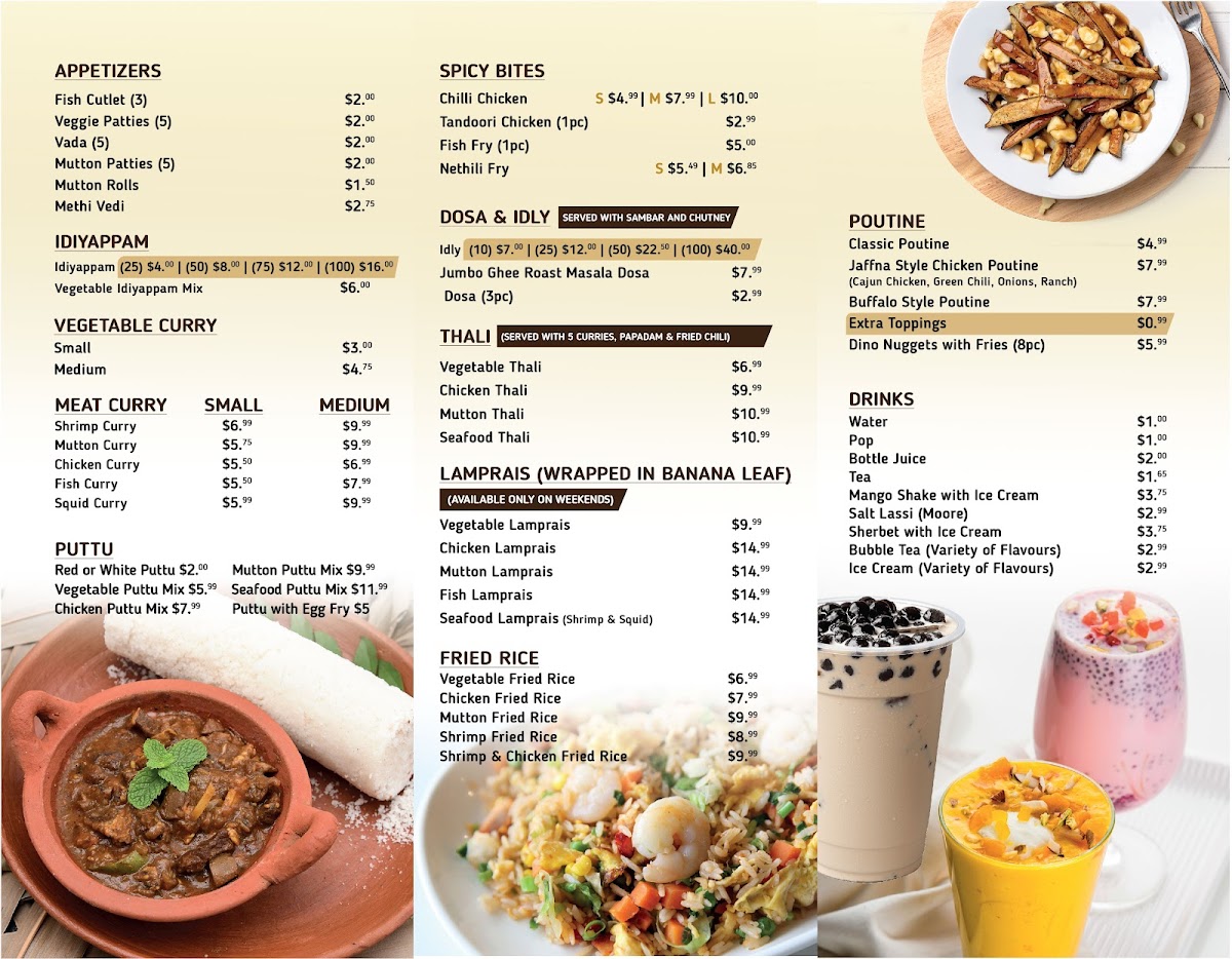 Welcome to Queens Take out & Catering, a hidden gem located in Scarborough, Ontario, specializing in authentic Sri Lankan and South Indian cuisine. Their menu is a vibrant tapestry of flavors, with standout dishes like Kottu Roti available in various mouth-watering options—veggie, egg, chicken, mutton, or seafood—each bursting with rich, authentic spices.